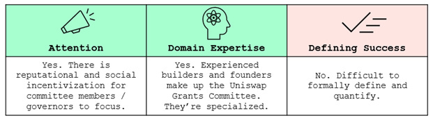 Recent Example: Uniswap Grants. A committee strategically allocates a portion of the treasury to fund new projects. This is loosely parallel to a CVC.